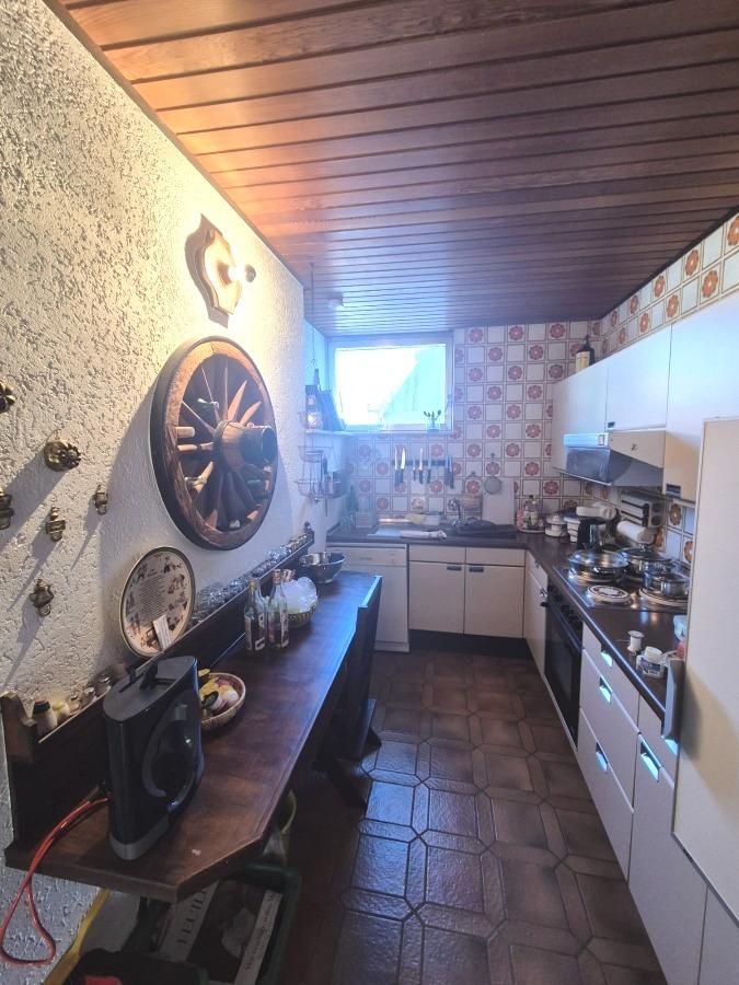 Obergeschoss: 4 Zimmer, Küche mit Einbauküche, 2 Schlafzimmer, Badezimmer mit Wanne