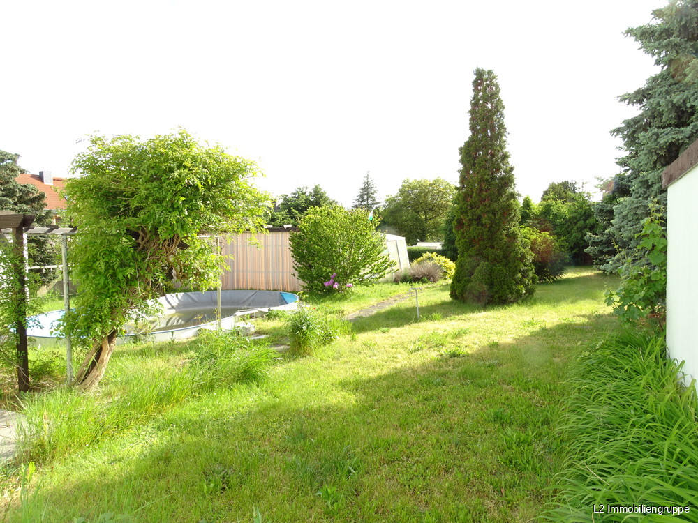 Grundstück: ca. 990 m², komplett angelegt und eingefriedet, ruhige Lage, alter Baum-und Gehölzbestand, erdeingelassener Pool, Gewächshaus, Terrasse, Garage, zusätzliche Garage mit Zugang in den Garten im vorderen Grundstücksbereich