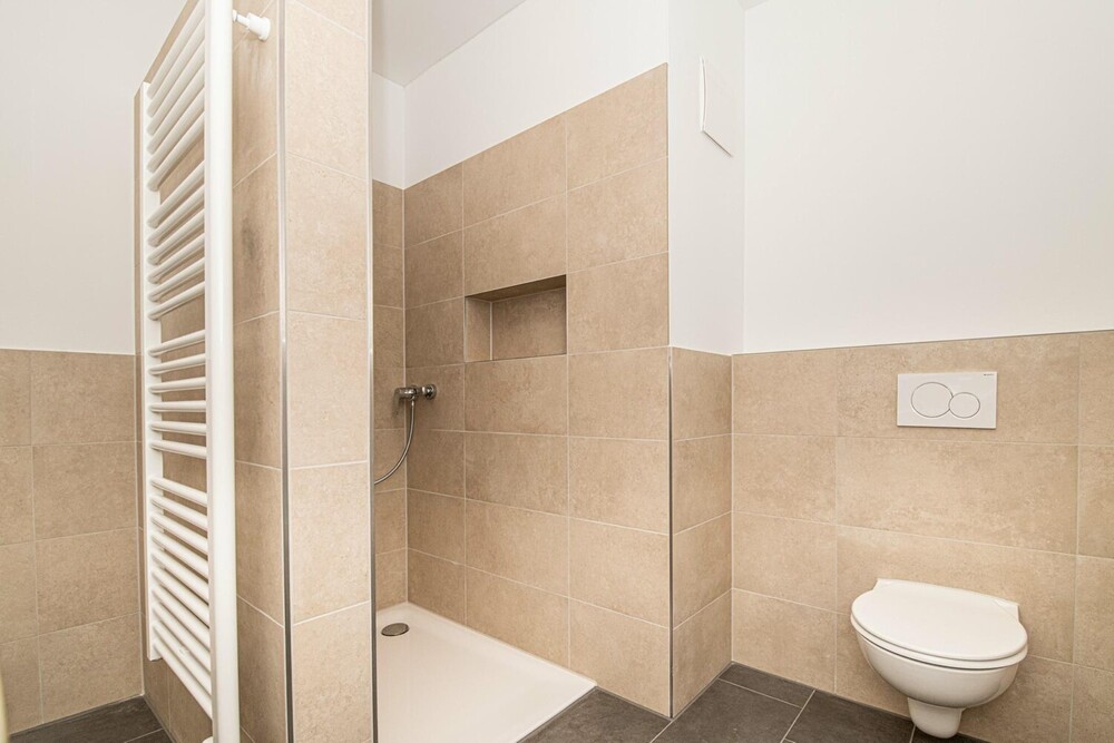 - Medienverteiler & Wärmetauscher für moderne Technik - Bodengleiche Duschwanne mit Ablage - Pflegeleichte Kunststoff-Alu-Fenster - Überdachter Fahrradstellplatz - Handtuchheizkörper im Bad