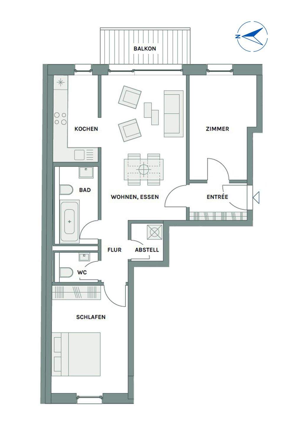 Visualisierung Wohen, Essen, Kochen Tageslicht - NEUBAUPROJEKT LANGE 30 - Stilvolle 3-Raum-Wohnung mit Balkon und hochwertigem Parkettboden