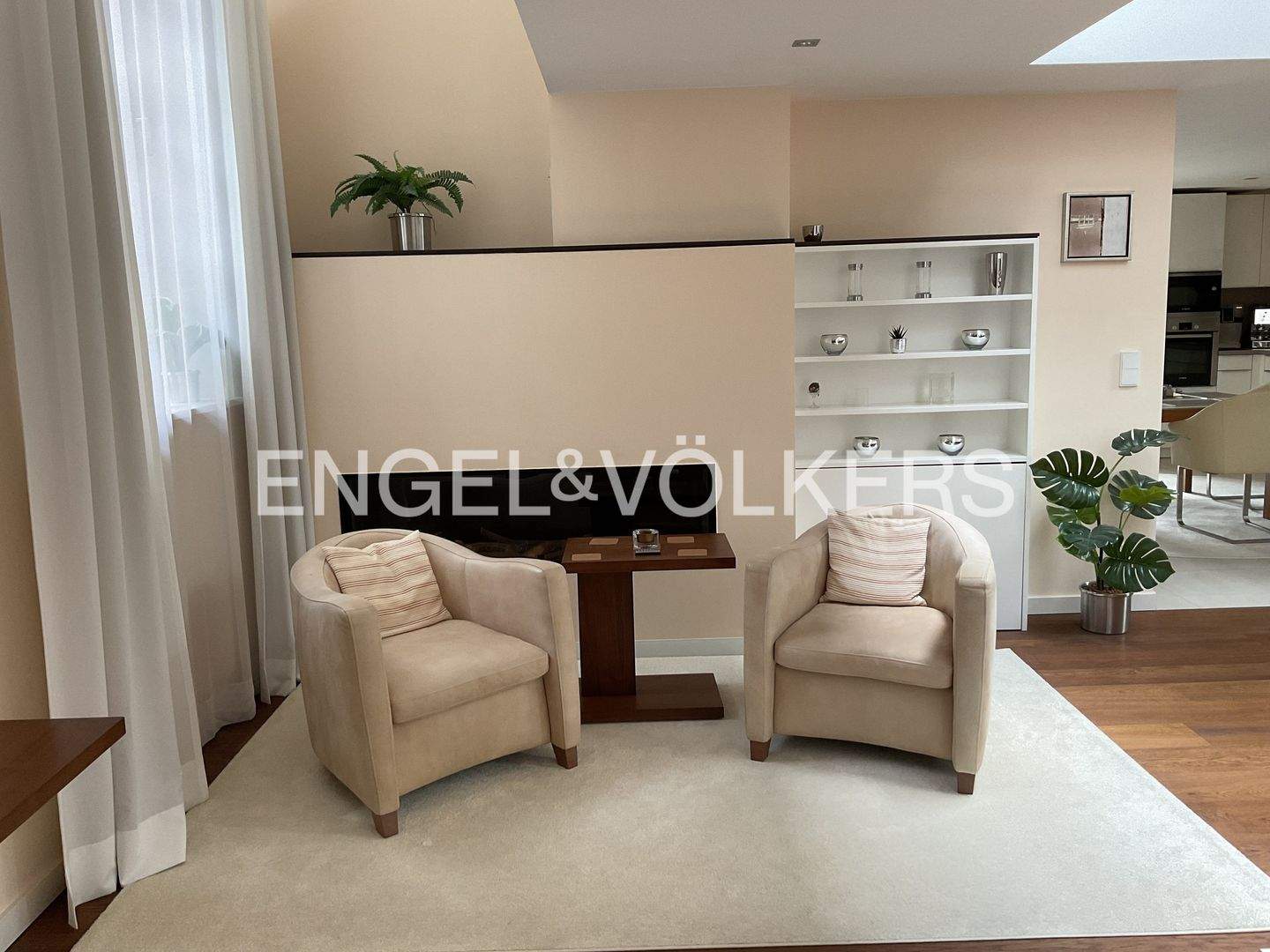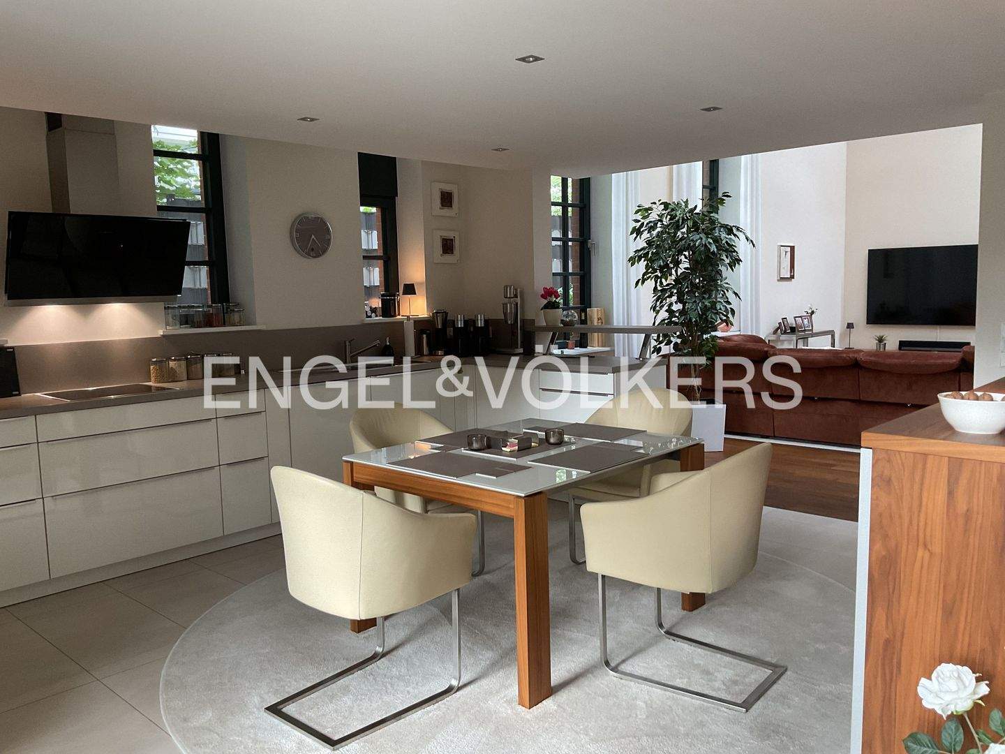 • Die weiße Designer Einbauküche mit Tresen und bodentiefen Fenstern ... - Mehrfamilienhaus, Wohnhaus mit 222,00 m² in Hamburg zum Kaufen