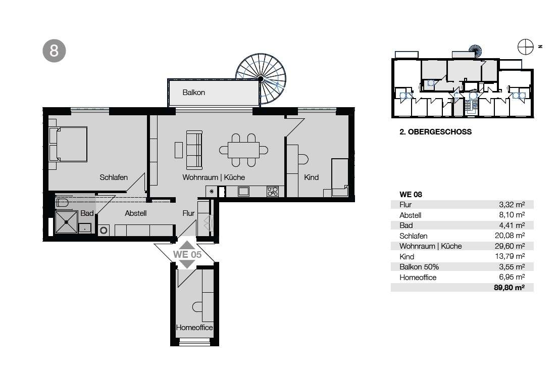 Die Grundrisse der Wohnungen mit jeweils einem zentralen offenen Wohn- Ess- und Küchenbereich sind großzügig, praktisch und hell geplant. Dadurch wird ein hoher Wohnkomfort für eine flexible Nutzung erreicht.