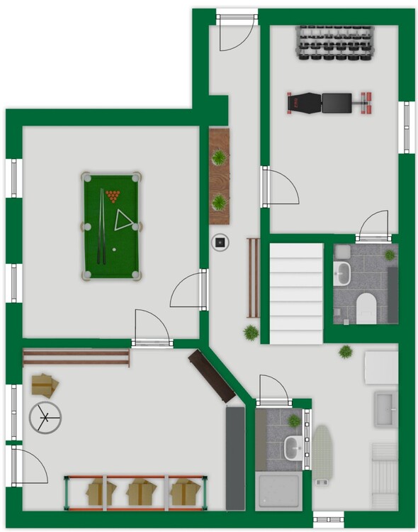 Untergeschoss (ebenerdig zur Einfahrt): Das Untergeschoss verfügt über drei beheizte Hobbyräume, die vielseitig nutzbar sind – etwa als Gästezimmer, Büro, Werkstatt oder Fitnessbereich. Zudem stehen hier eine Waschküche, ein Badezimmer mit Dusche, ein separates WC sowie der Heizungskeller zur Verfügung.