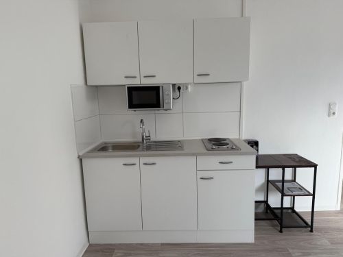 Wohn-/Schlafraum (PVC hell, 12, 6 m²) mit neuer Küchenzeile (Doppelherd, Spüle mit Abtropfbecken, Mikrowelle), Küchenzeile mietfrei, Gemeinschaftsflächen: Flur (Laminat hell, 7, 4 m²/3=2, 4 m²), Gemeinschaftsbad mit großer Dusche, WC und Doppelwaschbecken, elektr. Rolläden, sowie einem der Wohnung zugeteilten Badezimmerschrank (PVC hell, 8, 5 m²/3=2, 8 m² ), zusätzliches Gemeinschafts-WC (Laminat, hell, 1, 8 m²/3=0, 6 m²), Waschküche mit mietfreier Waschmaschine (12 m²/3=1, 4 m²), Trockenplatz, alles im DG. Für einen Stellplatz vor dem Haus fallen zusätzlich 25 EUR/Monat an.