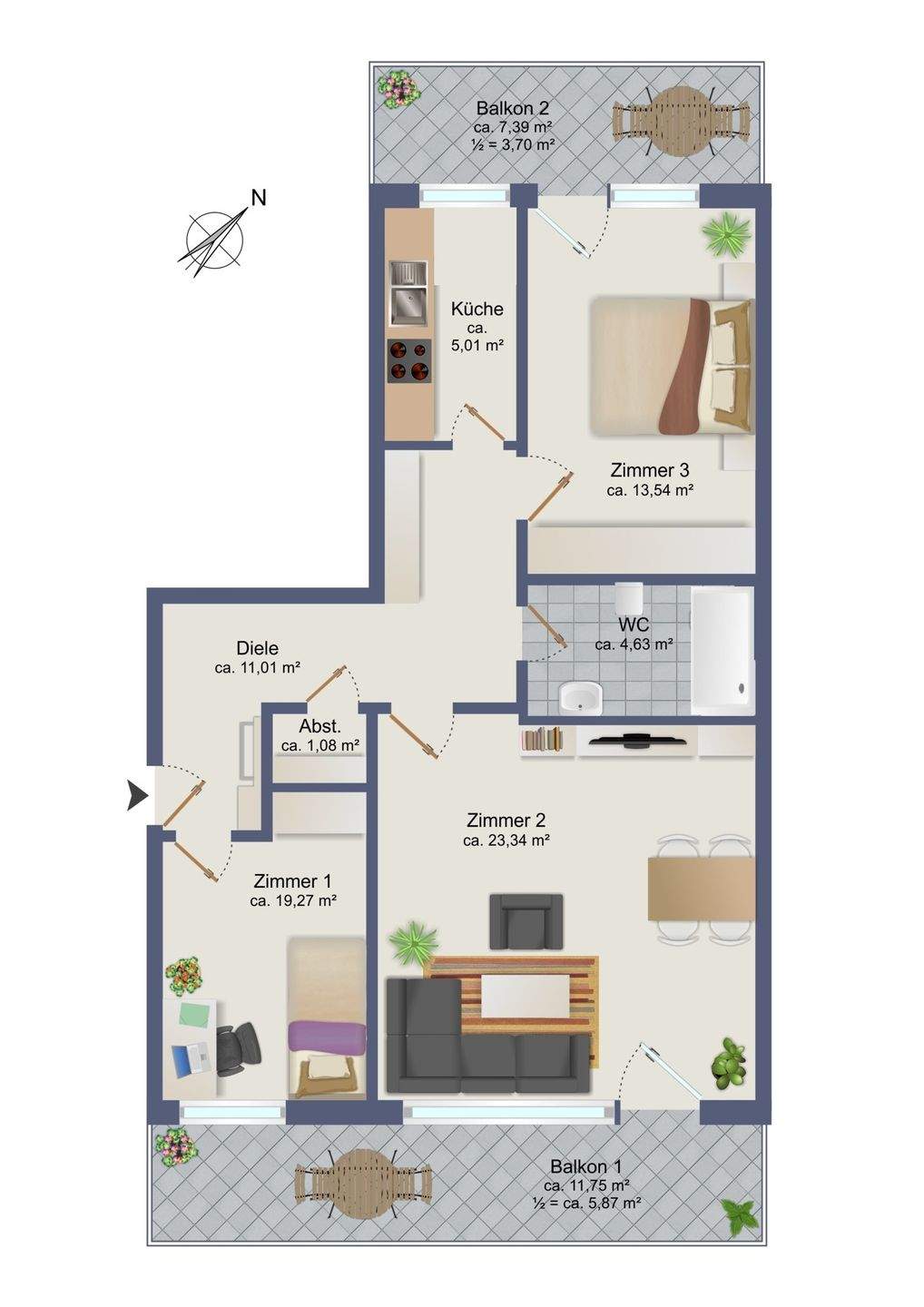 Wohnfläche:ca. 76,70 m²