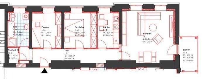 Sie befinden sich hier: gepflegte 3-Raum Altbauwohnung mit Einbauküche, Badmöblierung, Abstellraum und Balkon in Cottbus Mitte - 25RYF7AASRSV | 1A-Immobilienmarkt.de
