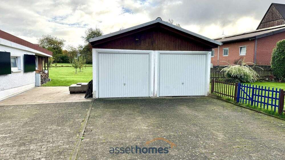 Garten-Terrasse - Einfamilienhaus mit Werkstatthalle in Lügde-Rischenau