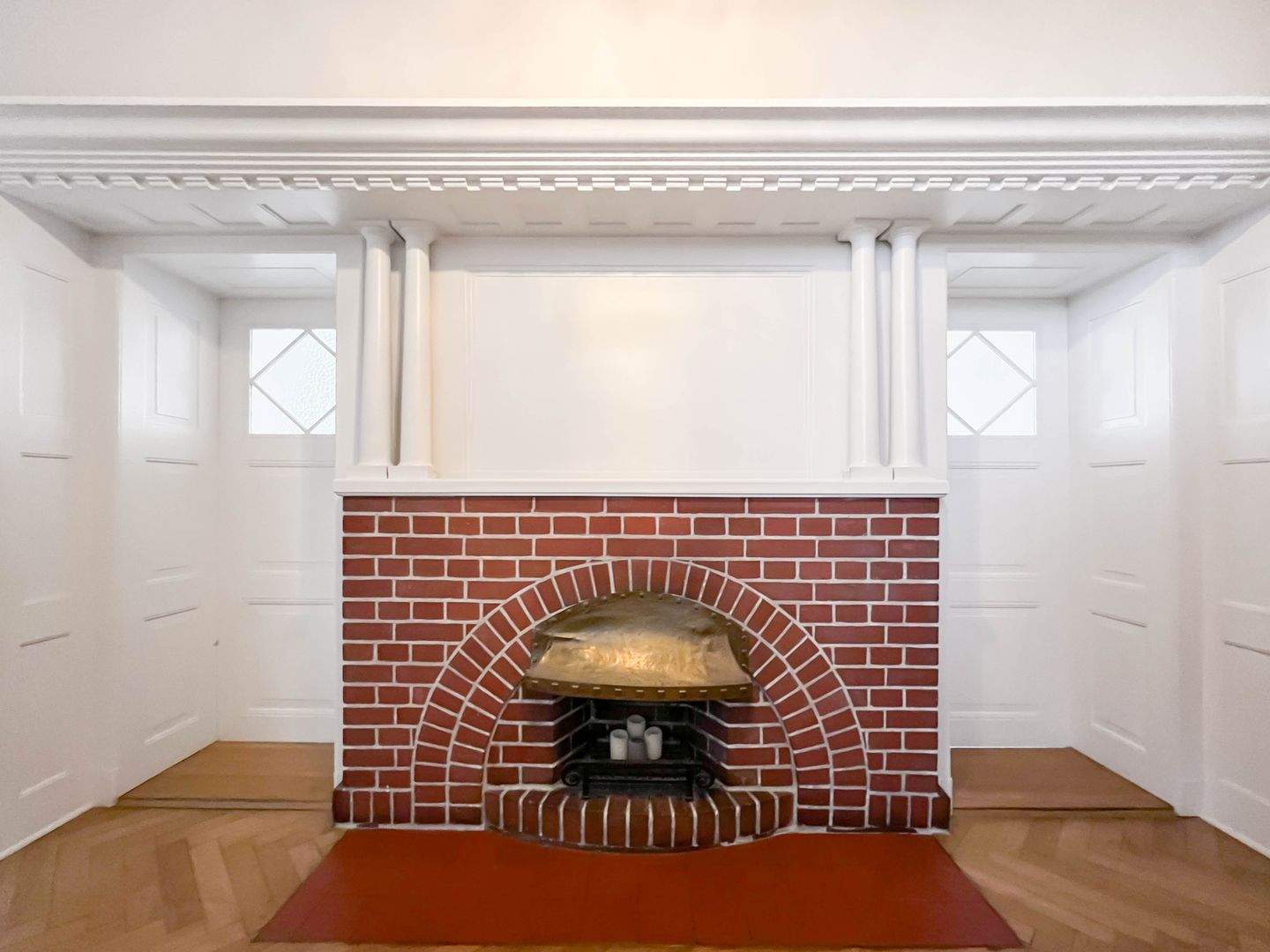 Rotklinkerkamin mit Kassettenelementen aus Massivholz - 5 Zimmer Etagenwohnung in Kiel