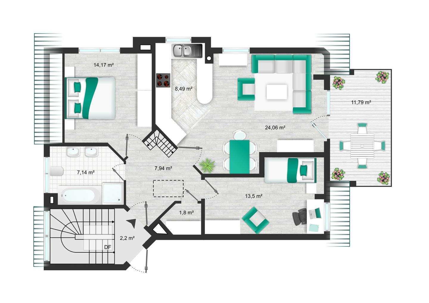 Gesamtgröße:ca. 77,00 m²