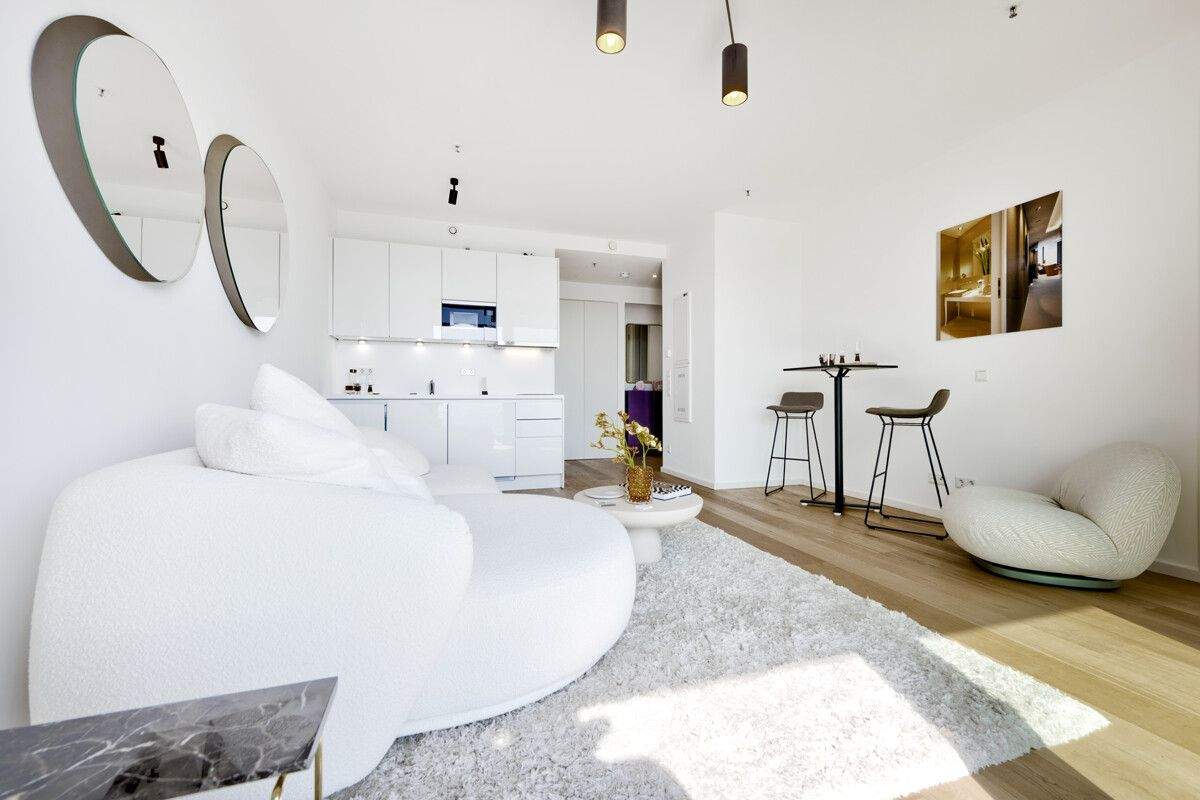 • Wohnküche - Wohnen mit Skyline-Panorama: Exklusives Tower-Apartment in City-Lage