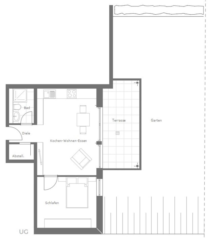 Foto - 2 Zimmer- Terrassenwohnung Souterrain in Südausrichtung