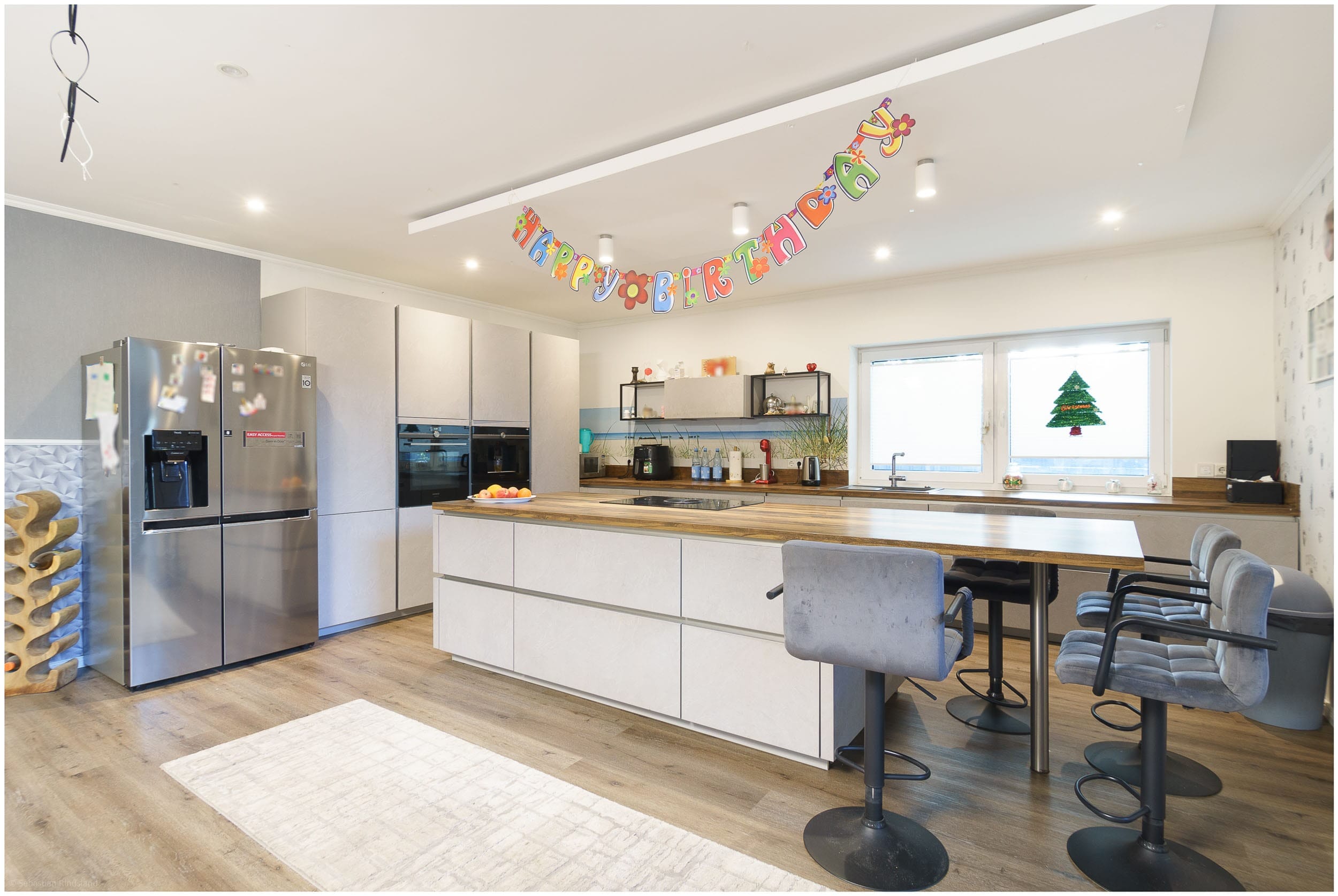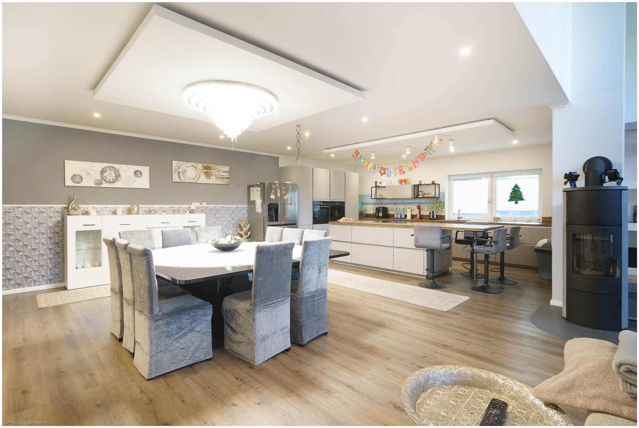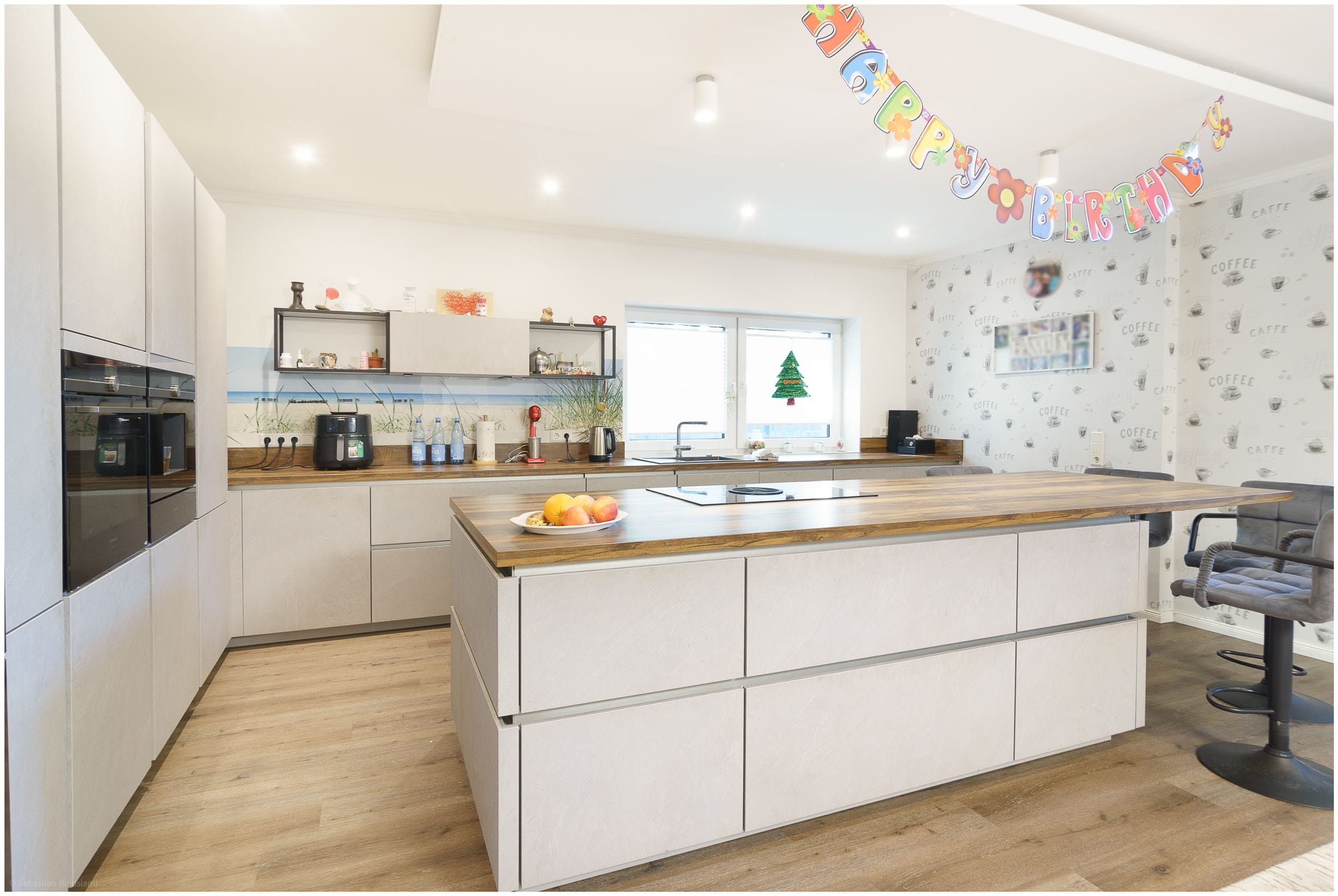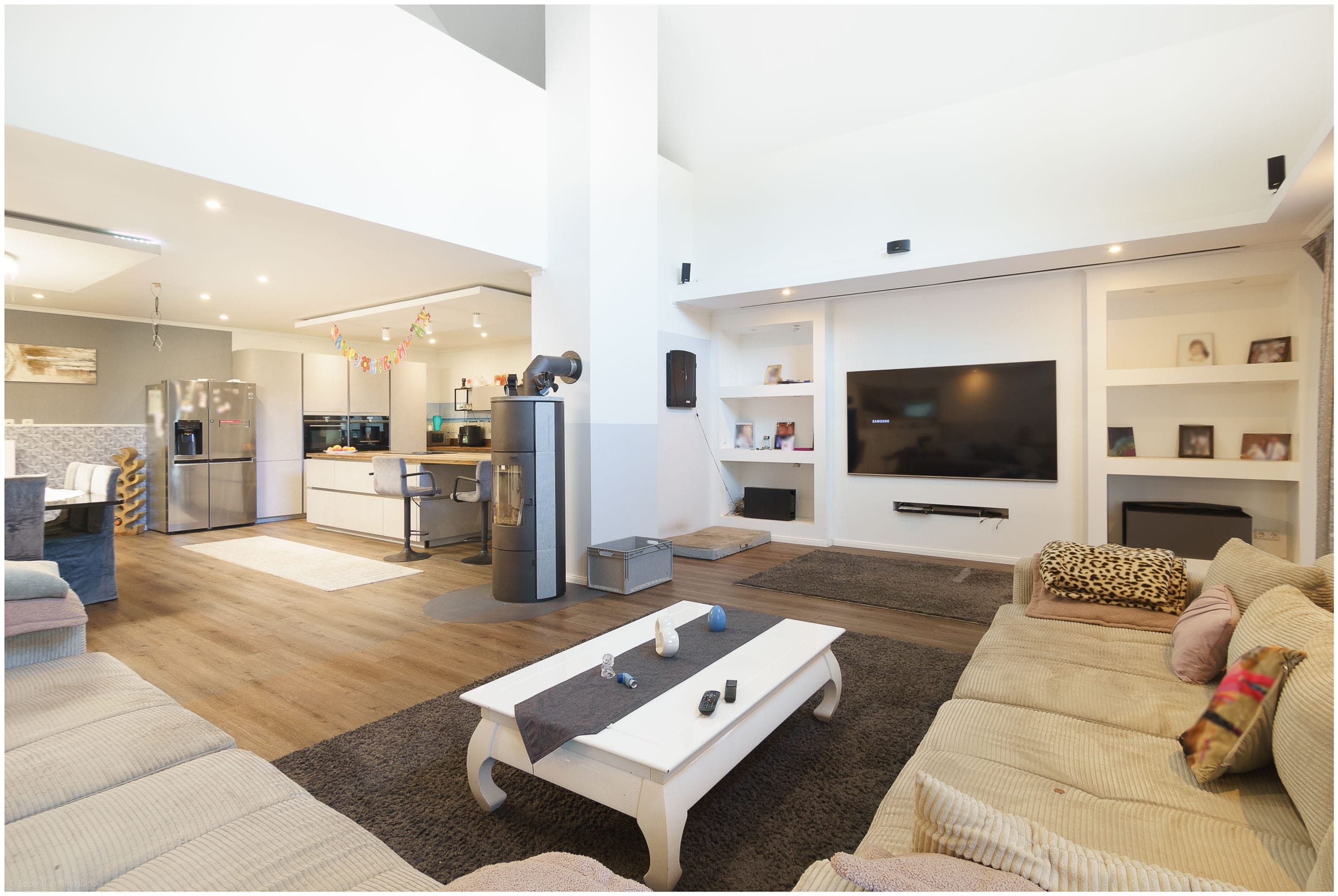 • Offener Wohn-, Koch- und Essbereich mit moderner Küchenzeile