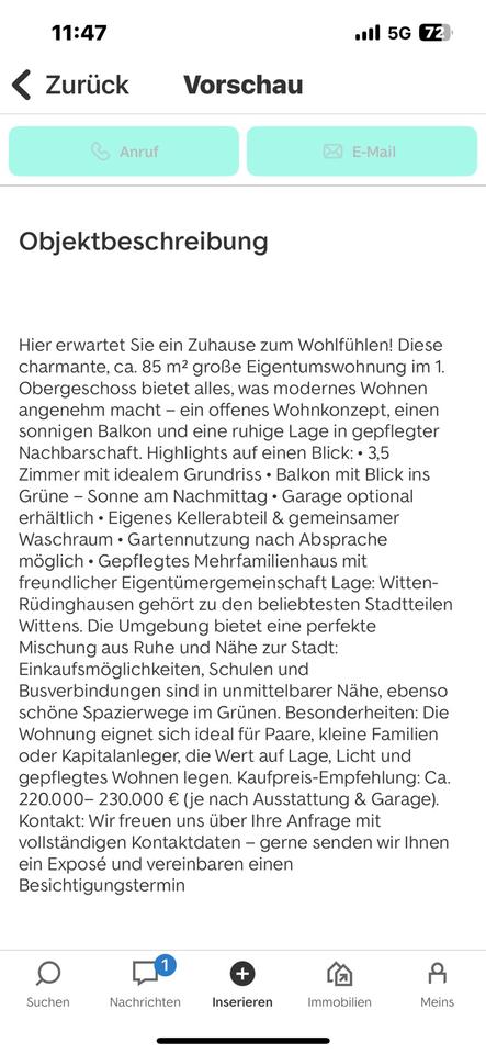 Sie befinden sich hier: Eigentumswohnung zum Verkauf in Witten- Rüdinghausen von Privat. in Witten Rüdinghausen - 3229910946-196-1021 | 1A-Immobilienmarkt.de