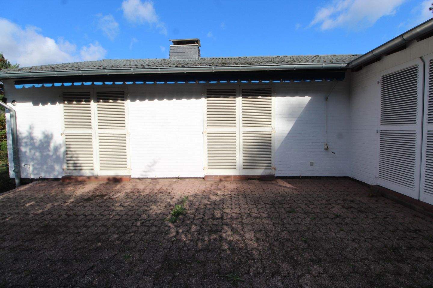 • Terrassenansicht mit geschlossenen Holzklappläden -