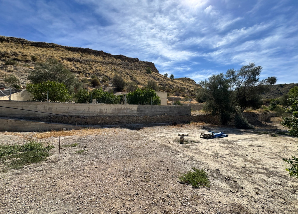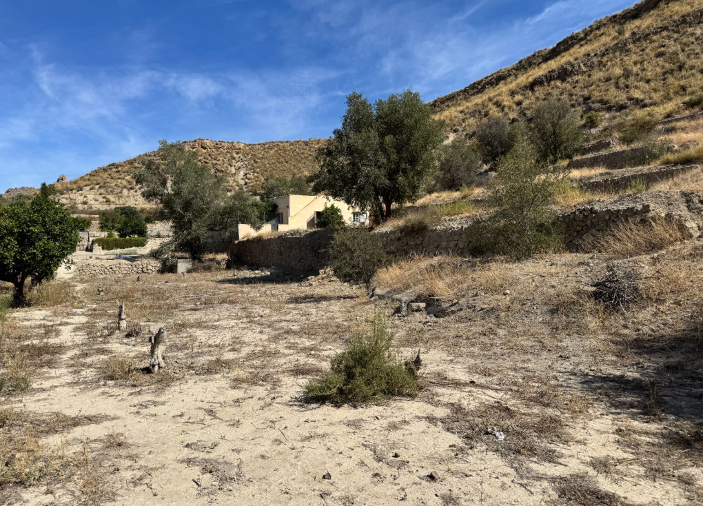 Detached country house approximately 90m2 set in a very desirable private and picturesque area of outstanding natural beauty, just five minutes driving or 15 minutes walking into historic Blanca town center, comprising main house, small gate house set in large terraced plot of approximately 9, 000m2 set with a range of mature fruit, almond and olive trees with irrigation water rights and also this property is viable to extend with planning permission which we can assist you. Comprising a covered veranda porch area which leads into the fitted dining kitchen, lounge with log burning stove installed with french doors out leading out onto a sunny patio, shower room, two double bedrooms. This property backs onto mountains so benefits from perfect peace and privacy, has a private gated entrance with a double car port parking area. Additional small gate house / stores workshop, plus additional store room at the rear of the main house. All ground floor accomodation with additional roof top terrace, patios and terraces around, mature gardens and established orchards surround this property. Mains water & electric connected, irrigation water, satellite dish for international TV installed, an ideal opportunity to acquire a lovely detached country house in a beautiful location within walking distance to historic Blanca town and all amenities, it is possible to legally extend this property with town hall license which we can assist you with this.