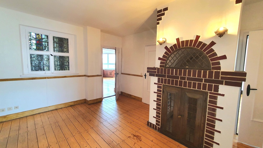Zu vermieten ist eine 5-Zimmer-Wohnung mit besonderem Charme. Viele schöne Details erinnern an frühere herrschaftliche Zeiten, dazu zählen die Bleiglasfenster im Schlafzimmer, Bad und im Eingangsbereich. Der ehemalige Kamin in der Diele ist ein besonderer Blickfang. Kleine Einbau/- Vorratsschränke in der Diele und in der Küche, sind weitere historische Details, die diese Wohnung zu etwas besonderem machen. Es ist keine klassische 5-Zimmer-Wohnung, da einige Zimmer mit einer Schiebetür verbunden sind. Die 1927 erbaute Villa, welche zentral in der Stadt liegt, allerdings nicht von negativen Umwelteinflüssen belastet ist, befindet sich in einem sehr gepflegten Zustand. Im Umfeld befinden sich kleine Mehrfamilien- und Einfamilienhäuser. Auf dem großzügigem Grundstück steht Ihnen auch ein eigener kleiner Gartenbereich zur Verfügung. Ihren PKW können sie bequem in der eigenen Garage (monatl. Gebühr 25 EUR) parken. Der Stellplatz davor, bietet weiteren Platz für ein Fahrzeug. Die Wohnung steht ab Dezember zur Vermietung frei.