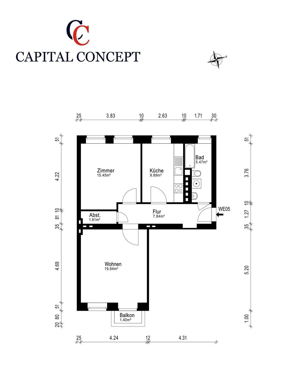 Wohnfläche:ca. 62,00 m²