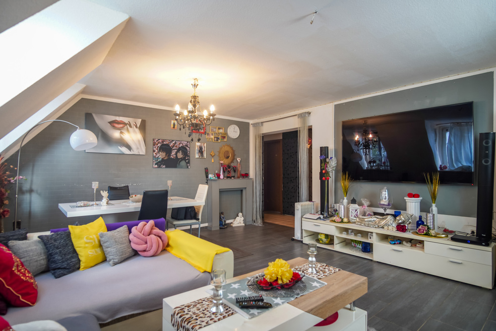 Das vollständig ausgebaute Dachgeschoss beherbergt eine rund 88 m² große Wohnung mit einem ähnlich funktionalen Grundriss. Auch hier erwarten die Bewohner vier Zimmer, eine separate Küche, ein Gäste-WC sowie ein Bad mit Dusche. Beide Wohnungen zeichnen sich durch eine freundliche Wohnatmosphäre und gute Vermietbarkeit aus.
