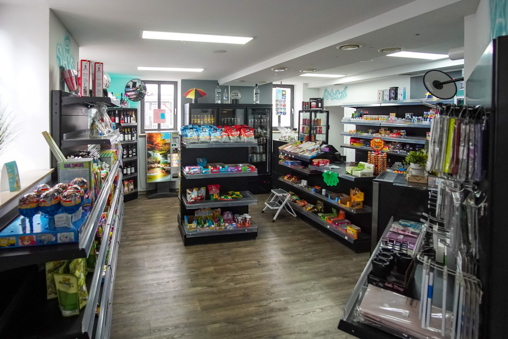 Im Erdgeschoss befindet sich die vermietete Gewerbeeinheit, die über zwei gegenüberliegende Ein- und Ausgänge verfügt. Sie umfasst einen großzügigen Verkaufsraum, einen Nebenraum mit Bar und Theke, einen angrenzenden Lagerraum sowie separate Sanitäranlagen für Damen, Herren und Personal. Ergänzt wird das Raumangebot um ein Büro und einen kleinen Abstellraum – ideal für verschiedene gewerbliche Nutzungen.