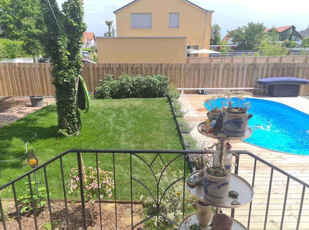 Garten mit Pool - 1 Zimmer Mehrfamilienhaus, Wohnhaus in Ludwigshöhe