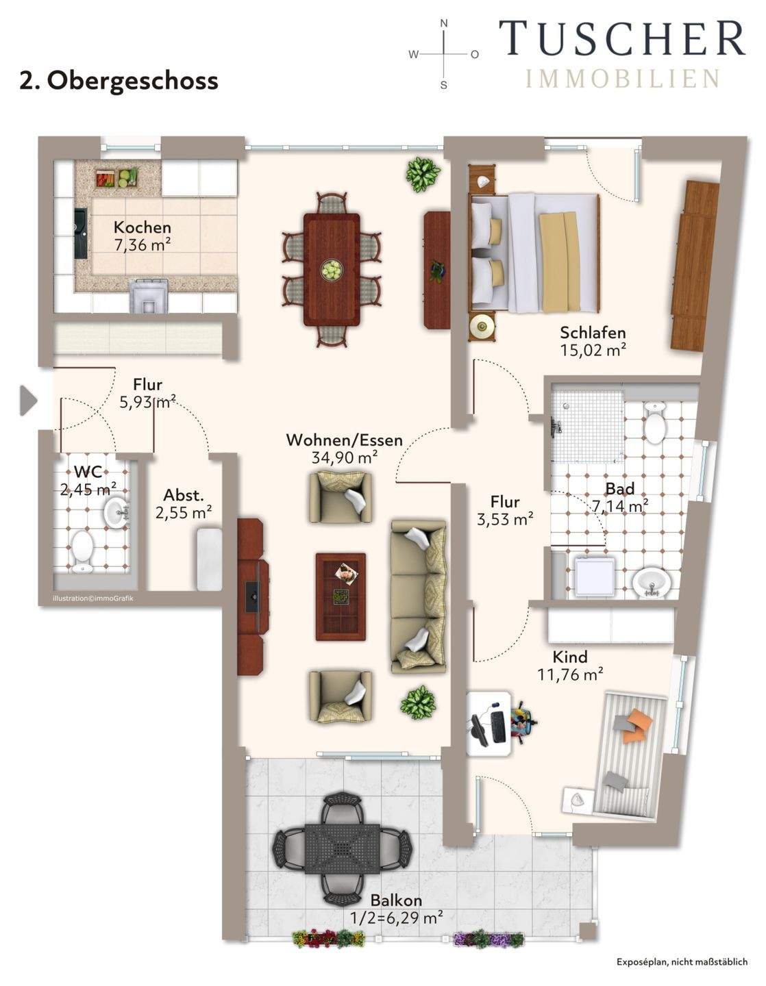Zimmeranzahl :3 Wohnfläche :ca. 96,00 m² Baujahr :2014 Frei ab :Bezug: sofort bzw. nach Absprache Etage :2 Balkon :