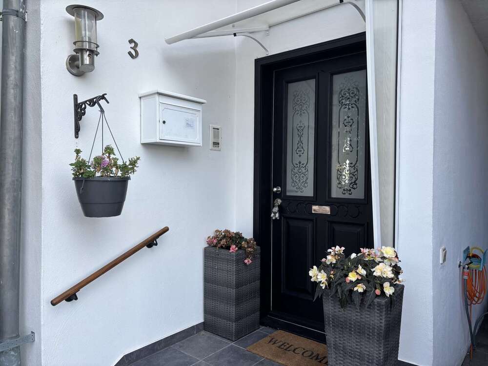 Das Haus besticht durch eine gelungene Raumaufteilung: Drei gemütliche Schlafzimmer, ein modernes Tageslichtbad mit Doppelwaschbecken, eine große Küche mit Einbauküche und ein lichtdurchflutetes Wohnzimmer schaffen ideale Wohnbedingungen. Elektrische Rollläden, ein praktischer Technikraum sowie drei Kellerräume für zusätzlichen Stauraum sorgen für höchsten Komfort im Alltag.