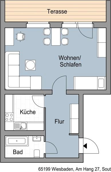 Sie befinden sich hier: Rundum wohlfühlen: gemütliche 1-Zimmer-Wohnung mit Terrasse in Wiesbaden Dotzheim - 3236143761-203-4911 | 1A-Immobilienmarkt.de