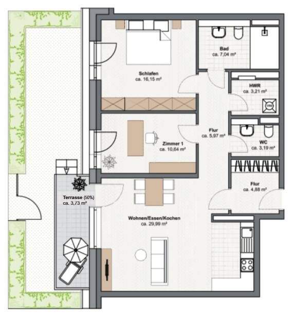 kaa16_got_mg_p1_03 - Für kleine Familien oder große Ideen: 3 Zimmer, Terrasse & Grünfläche.