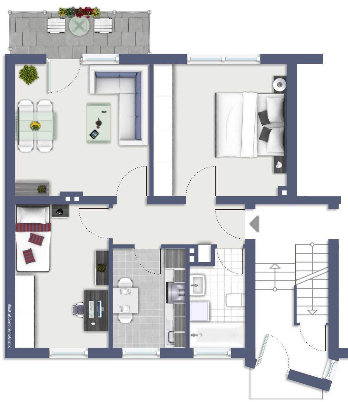 Grundriss - 3 Zimmer Etagenwohnung zum Kaufen in Burscheid