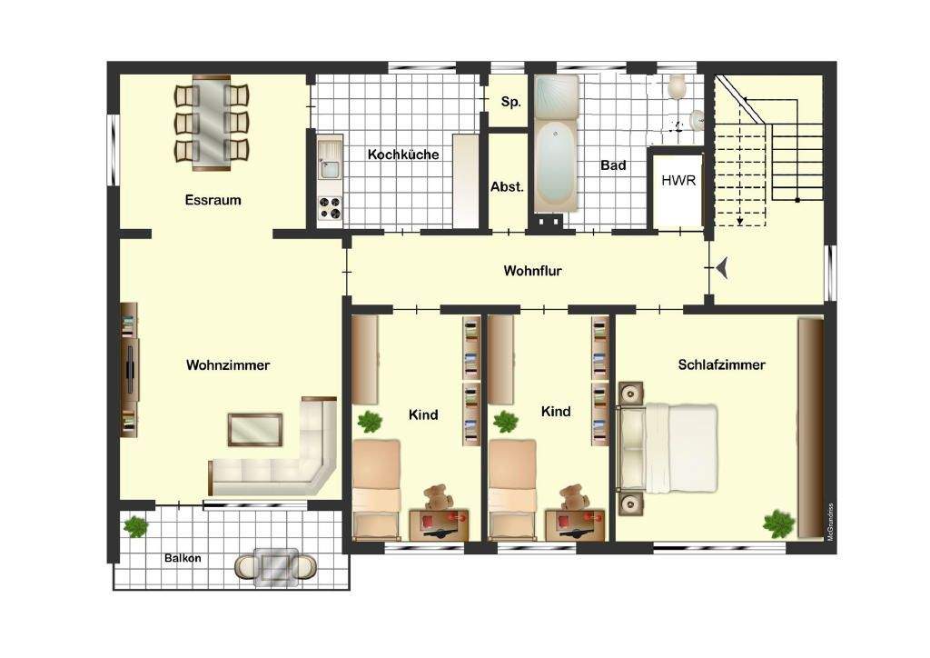 Zimmeranzahl :4 Gesamtgröße :ca. 101,00 m² Wohnfläche :ca. 101,10 m² Baujahr :1975 Frei ab :01.01.2026 Balkon :
