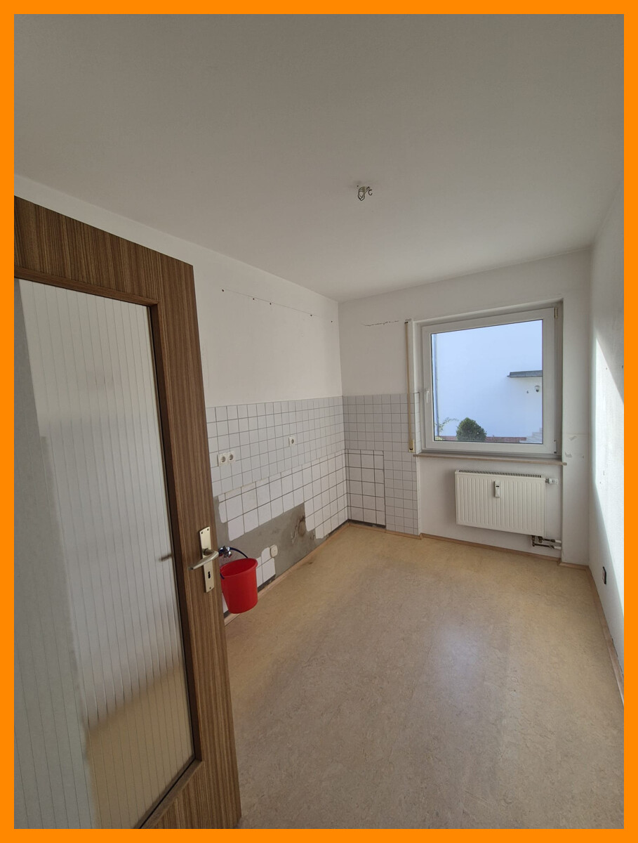 Die Wohnung besteht aus 3 Zimmern (Kinder-, Schlaf- und Wohnzimmer), Küche und Bad mit Badewanne. Zur Wohnung gehört ein Keller und Balkon. Eine Garage kann für 50 Euro mitgemietet werden.