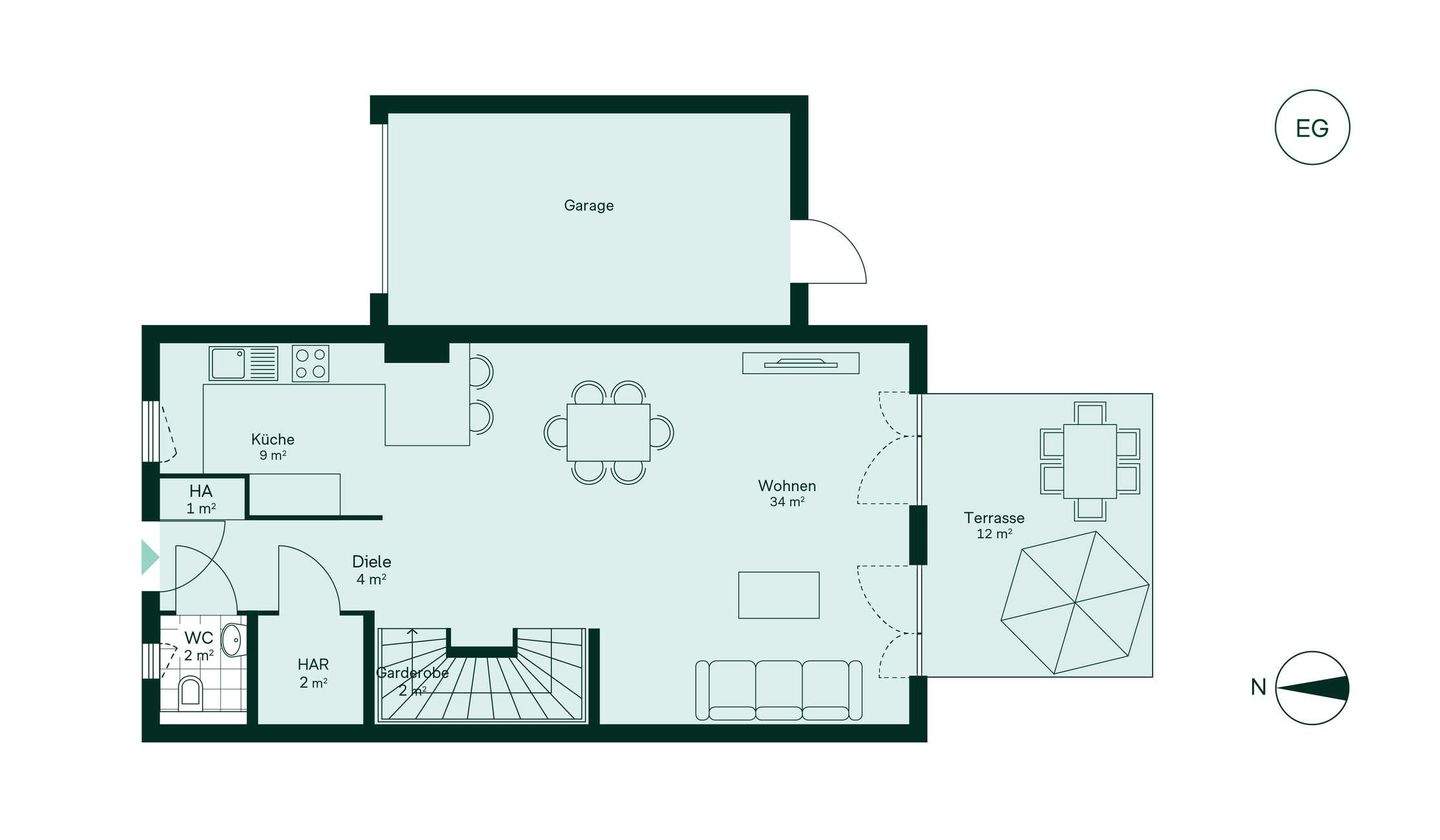 • Offener und großzügiger Wohnbereich im Erdgeschoss -
