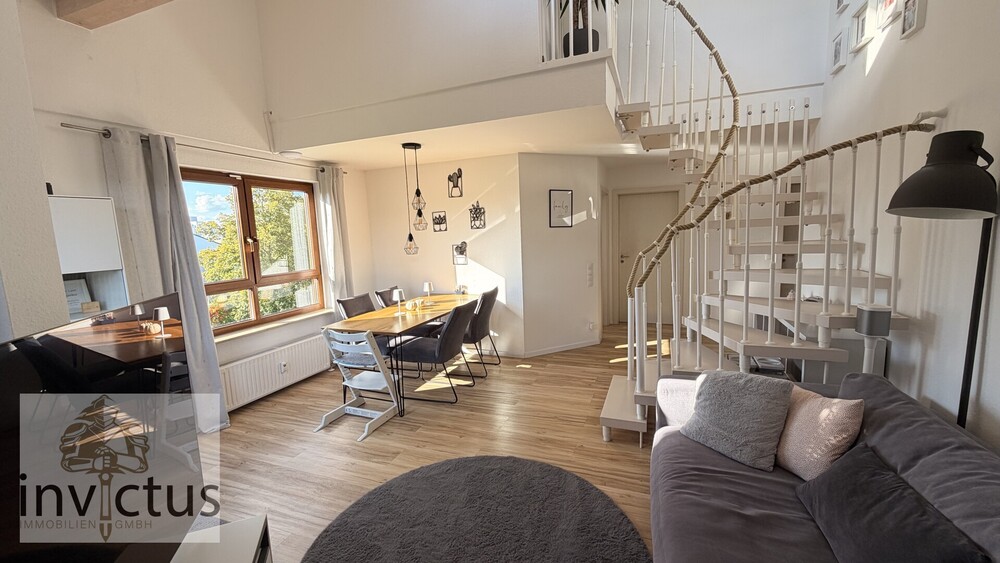 Stilvolle Maisonettewohnung in Pleidelsheim mit Süd-Loggia, zwei Tageslichtbädern und modernem Grundriss. Ruhige Lage, hoher Wohnkomfort, 3 Stellplätze (1 Tiefgaragenstellplatz + 2 Außenstellplätze) und im Jahr 2022 vollständig saniert.