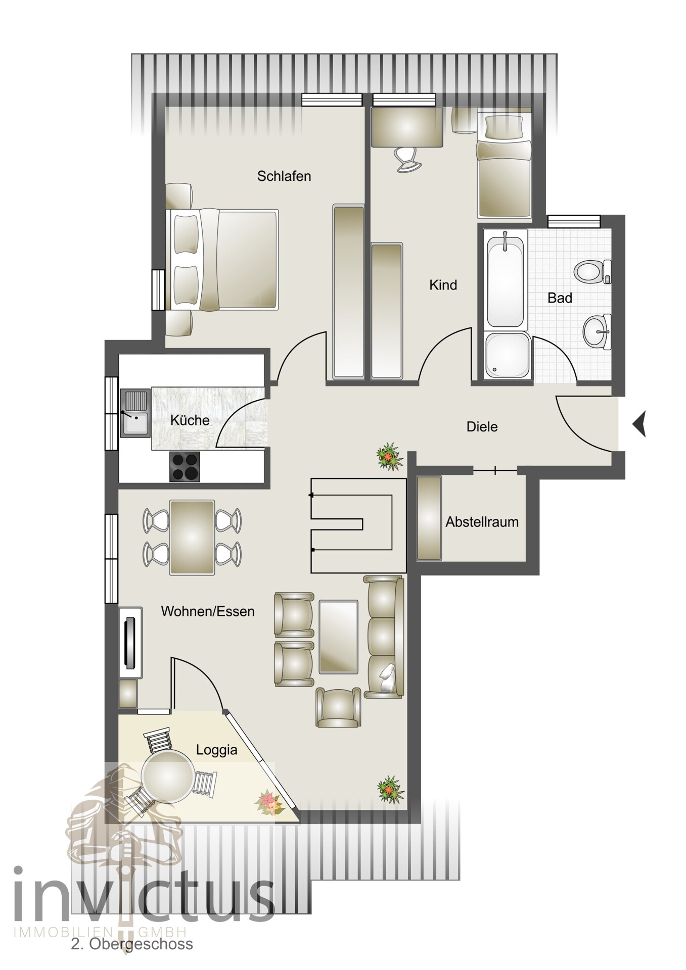 Sie befinden sich hier: Hier stimmt alles! Moderne Maisonettewhg. charmanter Süd-Loggia und 2 Tageslichtbädern u. Parken in Pleidelsheim - 834_TK_Invictus | 1A-Immobilienmarkt.de