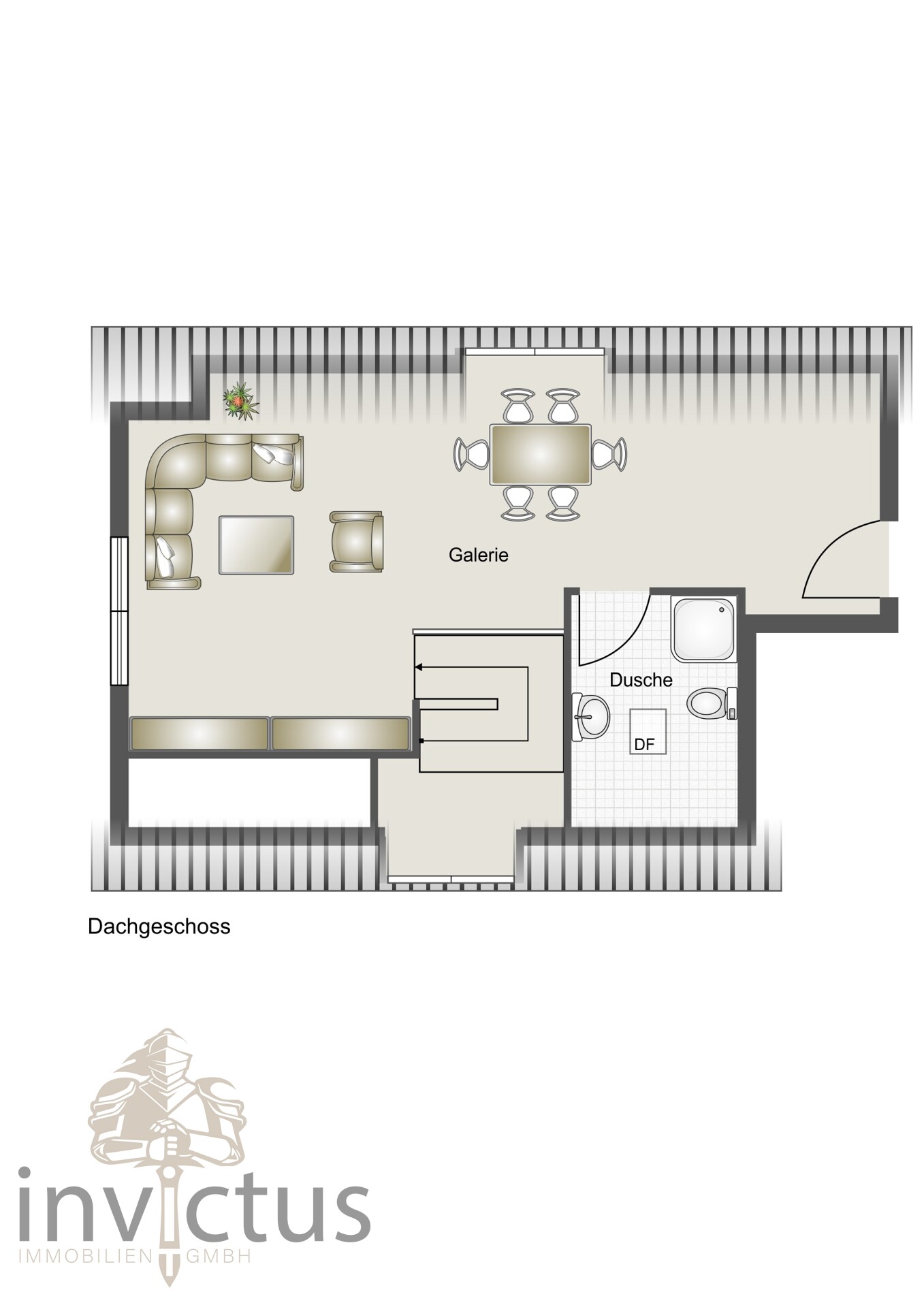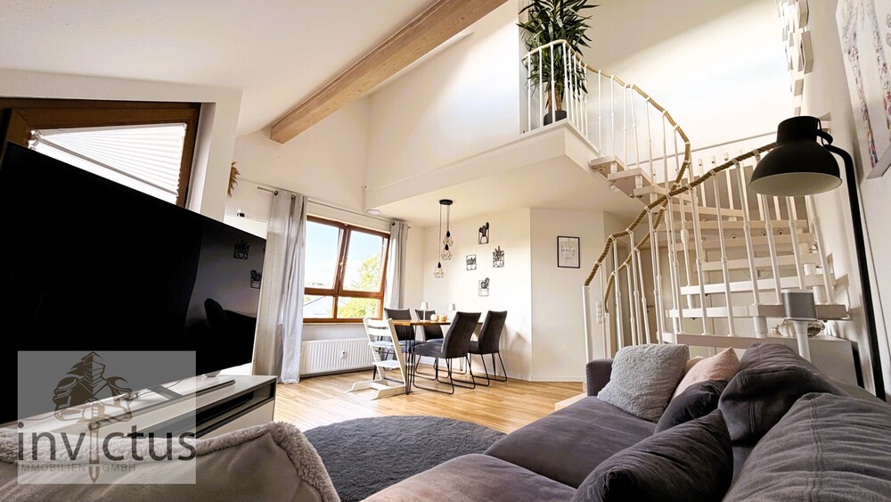 Über die innenliegende Treppe gelangen Sie in das offene Dachgeschoss, das mit Weite und Licht beeindruckt. Große Fenster lassen den Himmel zum ständigen Begleiter werden, während sich dieser Bereich ideal als Atelier, Arbeitszimmer oder gemütlicher Rückzugsort anbietet. Hier oben kann man lesen, träumen, kreativ sein oder einfach die Stille genießen. Ein weiteres modernes Duschbad auf dieser Ebene ergänzt Ihre Wohnung perfekt – elegant gestaltet und vor allem funktional.