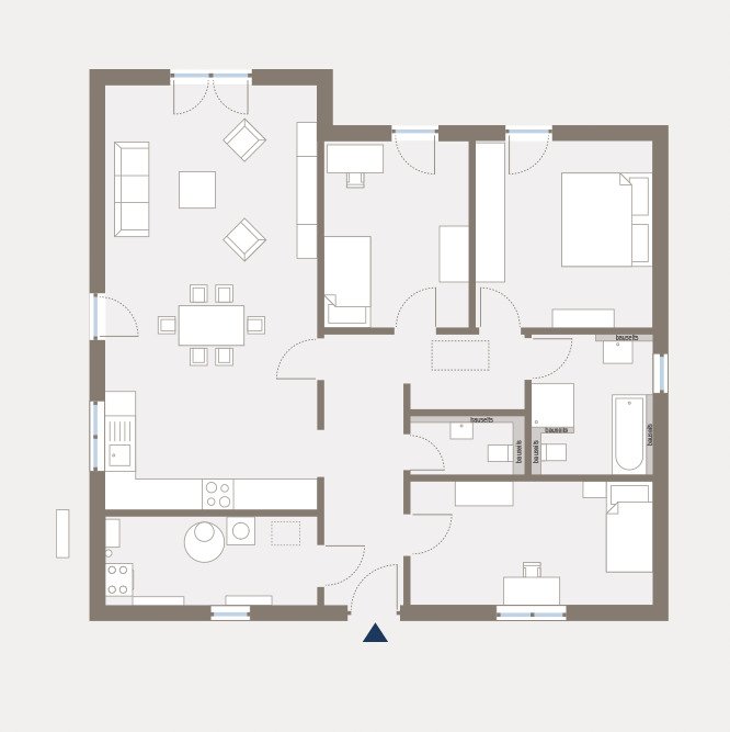 | Die Ausstattung Ihres neuen Bungalows lässt keine Wünsche offen. Neben einer hochwertigen Energieeffizienzwand sorgen dreifach verglaste Fenster inklusive Rollläden mit Aluminiumlamellen für eine optimale Wärme- und Schalldämmung. Die Fußbodenheizung schafft wohlige Wärme in jedem Raum, während die Luft-Wasser-Wärmepumpe umweltfreundliche Heizlösungen bietet. Eine Be- und Entlüftungsanlage gewährleistet frische Luft im gesamten Haus, während die lichten Raumhöhen von 2, 75 m ein großzügiges Gefühl vermitteln. Auch bei der Wahl der Materialien setzen wir auf höchste Qualität: Alle verwendeten Produkte sind schadstoffgeprüft und zeichnen sich durch Langlebigkeit aus. | |