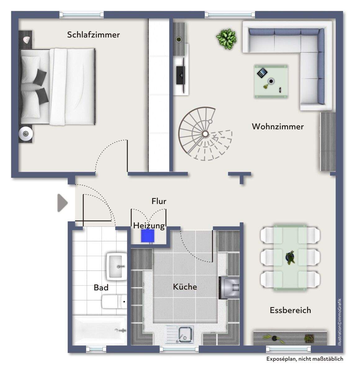 Grundriss beispielmöbliert -
