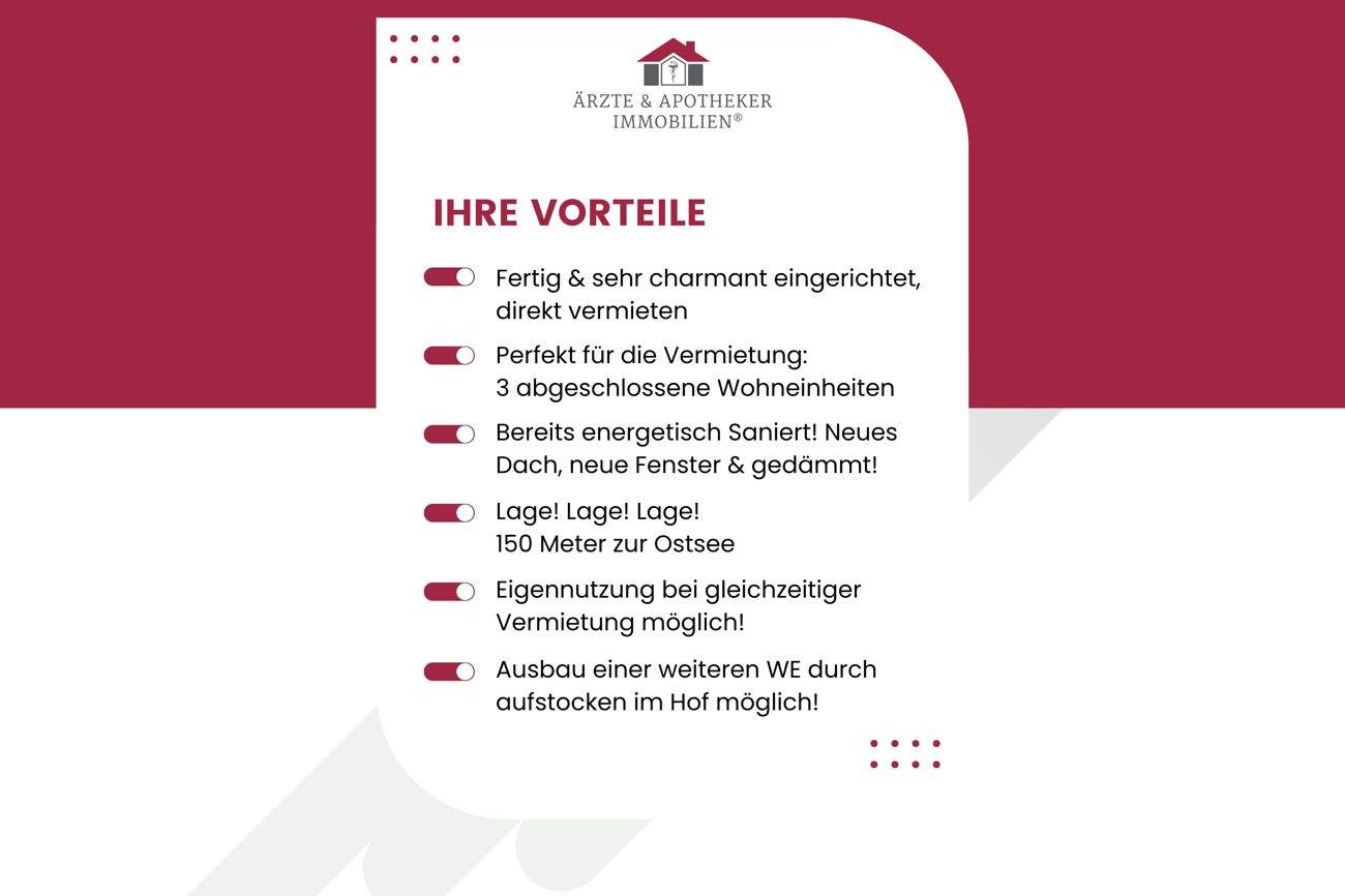 Ärzte & Apotheker Immobilien - Saniert: Ferienhaus in Top-Lage mit 3 Wohneinheiten nur 150m zum Meer!