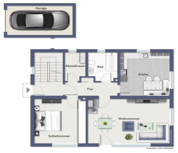 Eine Gewähr für die Richtigkeit sämtlicher im Exposé enthaltener Angaben und Abmessungen wird trotz sorgfältiger Bearbeitung von Daten, Bildern und Informationen nicht übernommen.