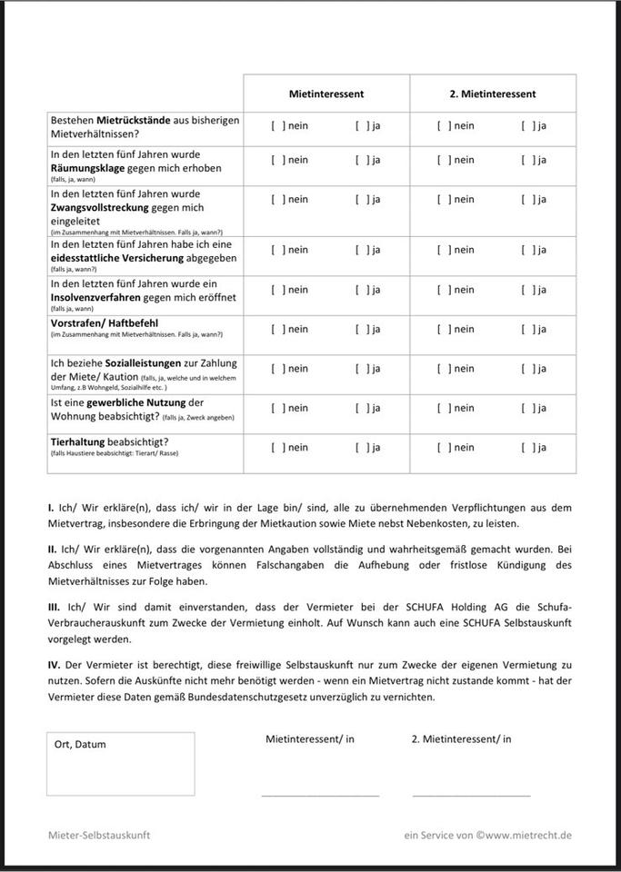 Angebot zur Miete