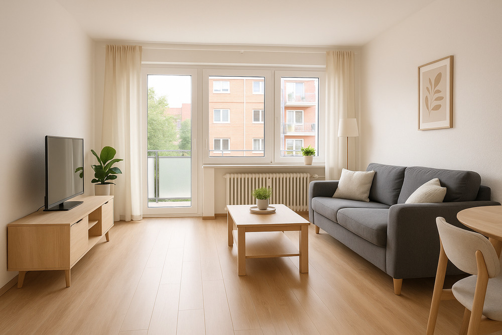 Wohnzimmer - Beispieleinrichtung - Berlin-Wilmersdorf: Helle 3-Zimmer-Wohnung mit Balkon, Aufzug & Fernwärme – ruhig, modernisiert & ideal für Eigennutzer & Anleger
