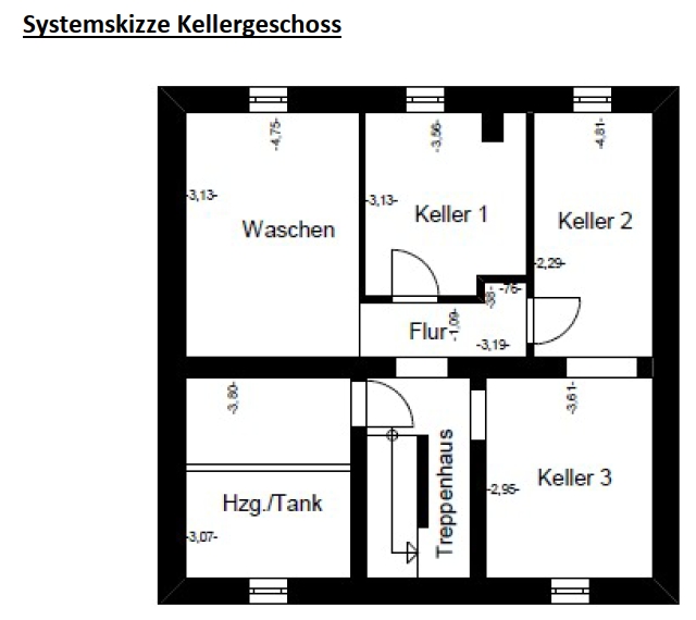 Kellergeschoss Der Keller umfasst mehrere Abstellräume, eine gemeinschaftliche Waschküche sowie den Heizungsraum. Stauraum ist ausreichend vorhanden.
