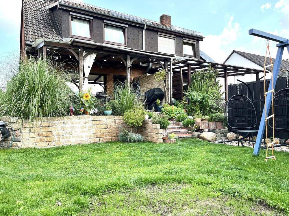 • Blick vom Garten auf Terrasse -