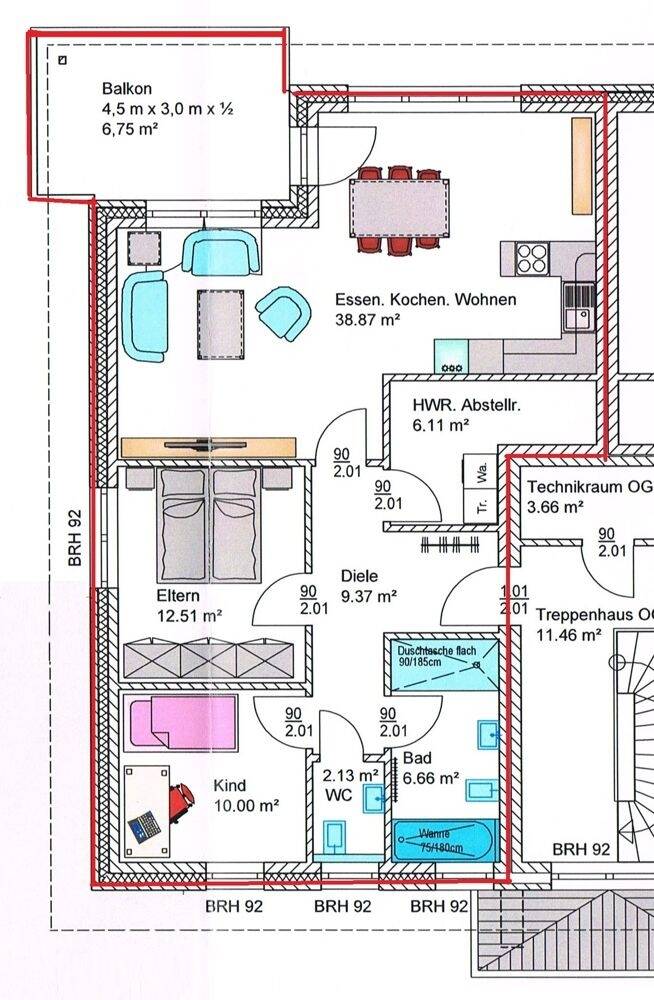 | Wohnfläche: | ca. 91,00 m² |