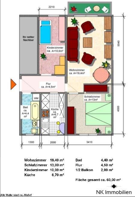 | Wohnfläche: | ca. 60,00 m² |