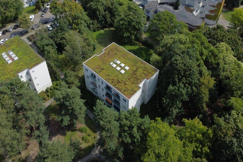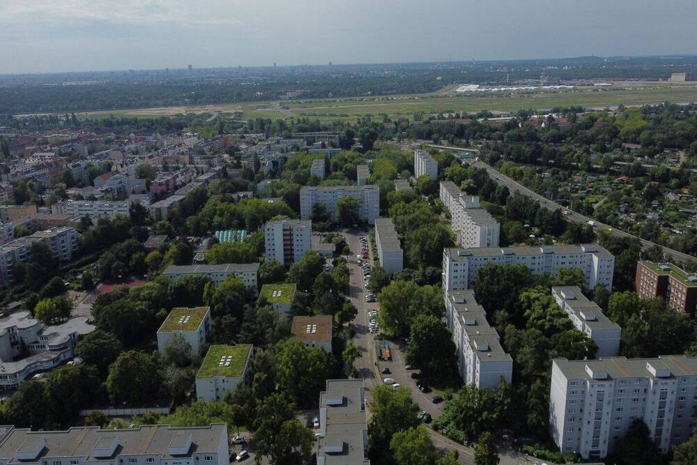 Luftbild Gebäude - Wohntraum zum Gestalten: 2-Zimmer mit Balkon, Garagenstellplatz & Keller in ruhiger Lage von Tegel