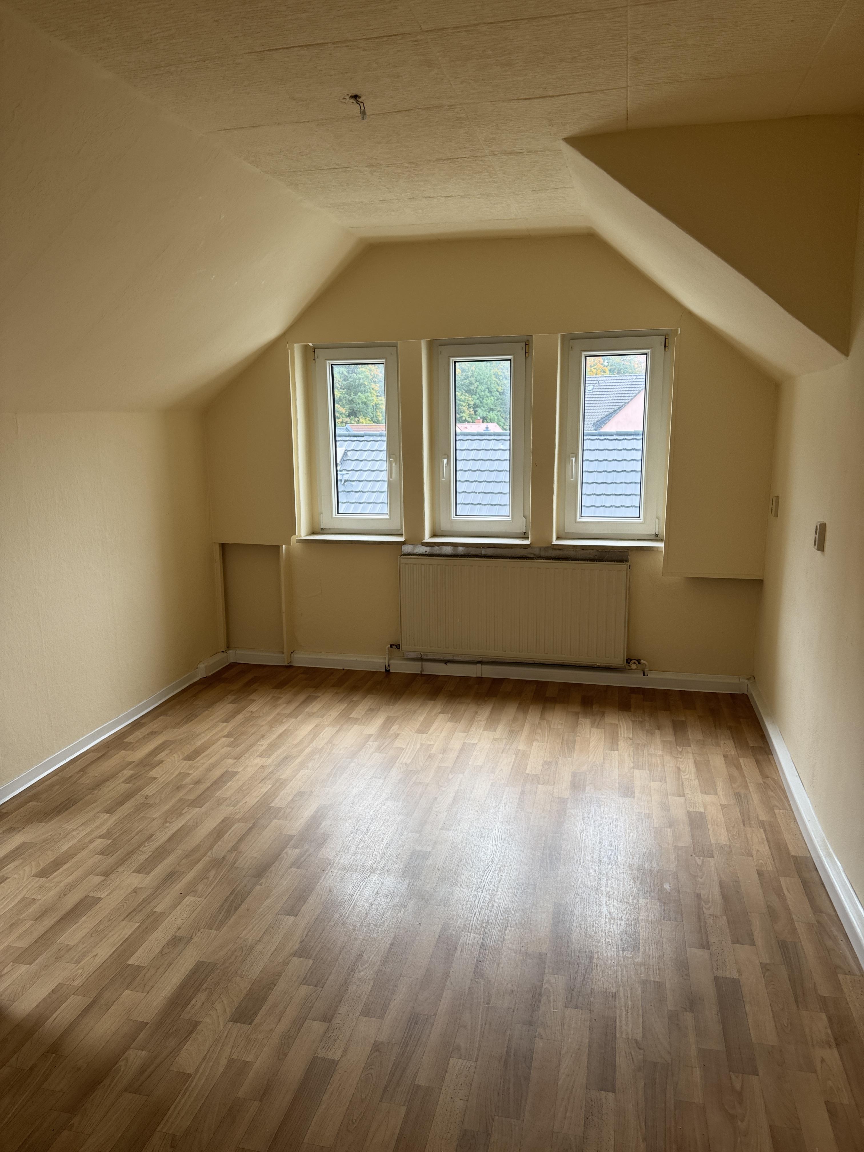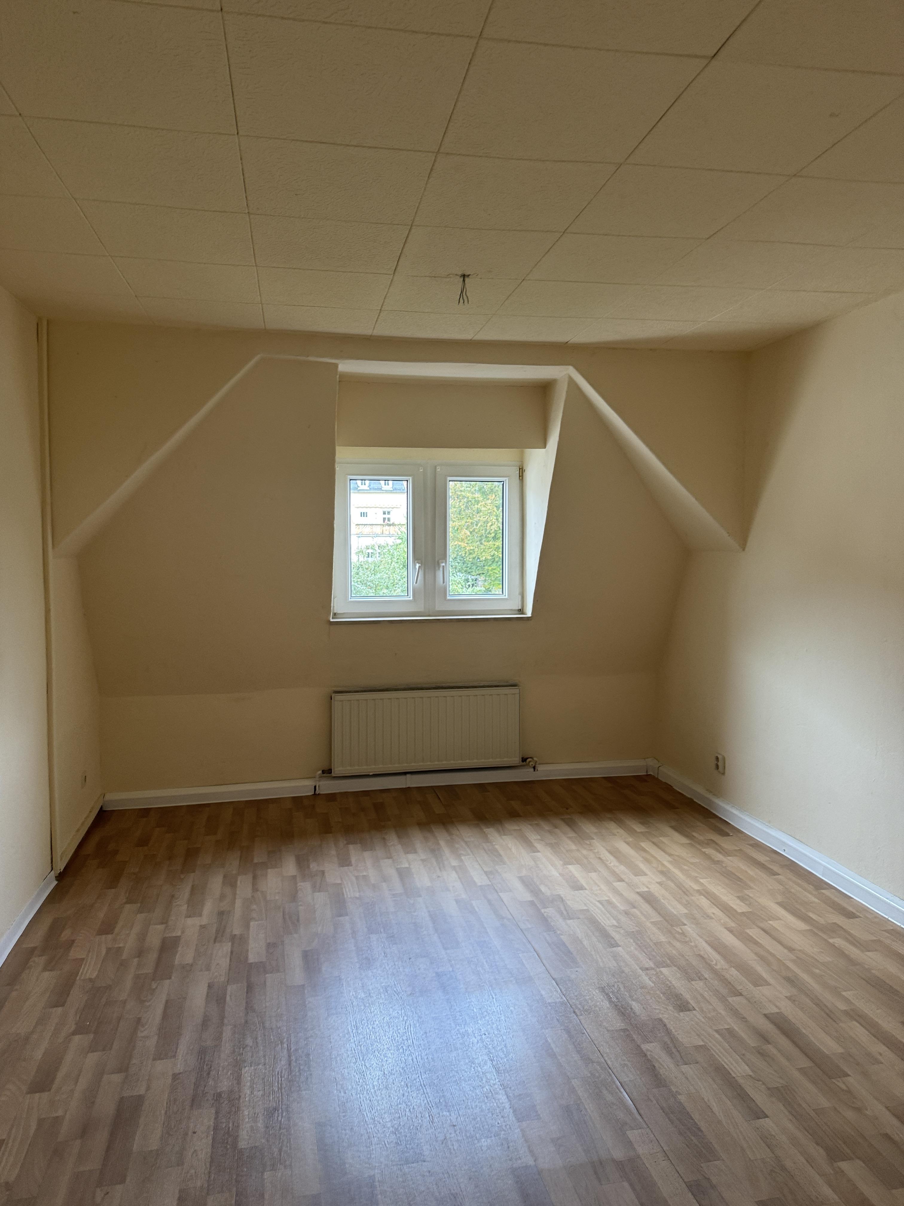 Die vermietete Wohnung im 1.OG ist in zwei Wohneinheiten aufgeteilt. Die beiden Wohnungen im Dachgeschoss müssen saniert werden, hierbei könnten diese auch zusammengelegt werden und mit einer neuen Raumaufteilung gut neu vermietet werden.