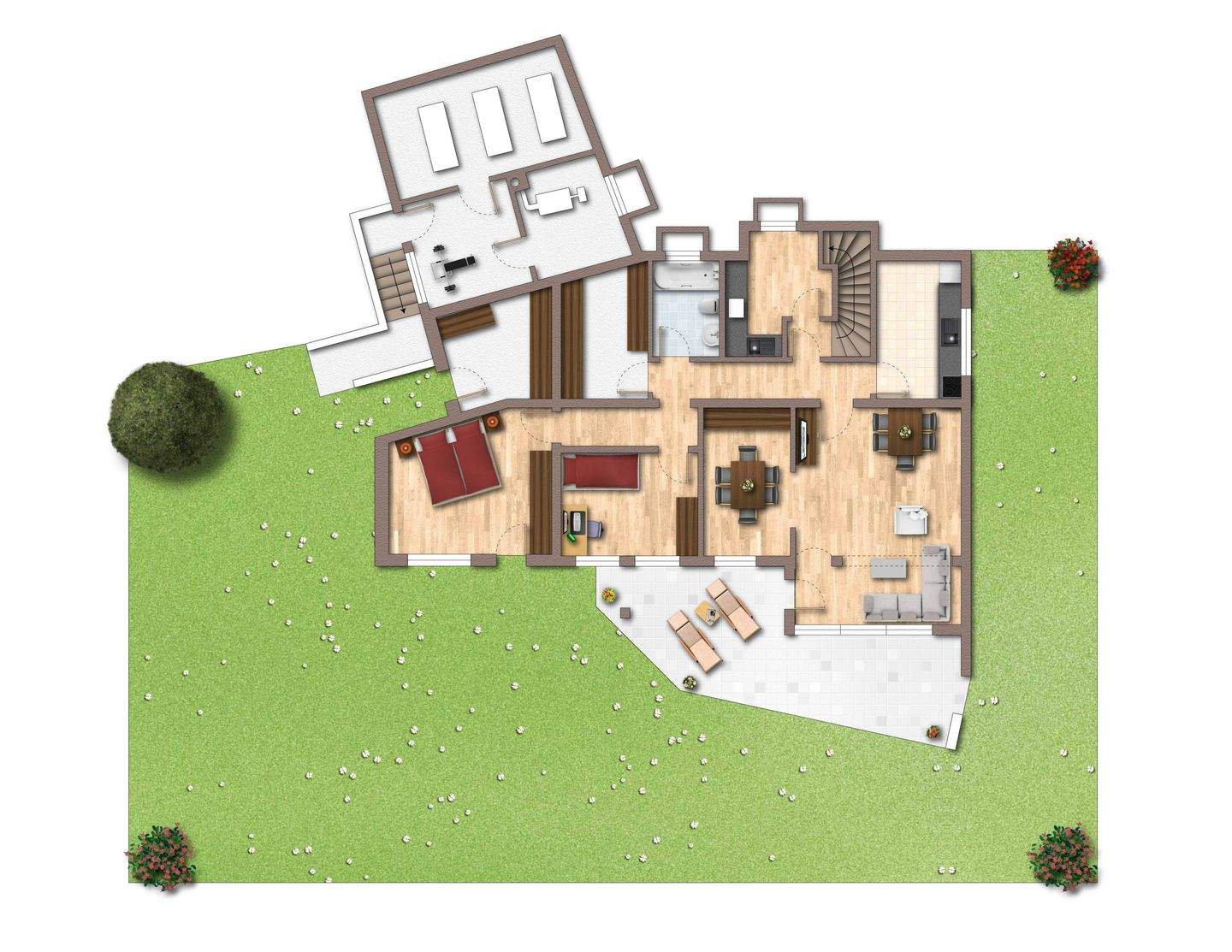 • Terrasse vor Party-oder Hobbyraum Gartengeschosswohnung -