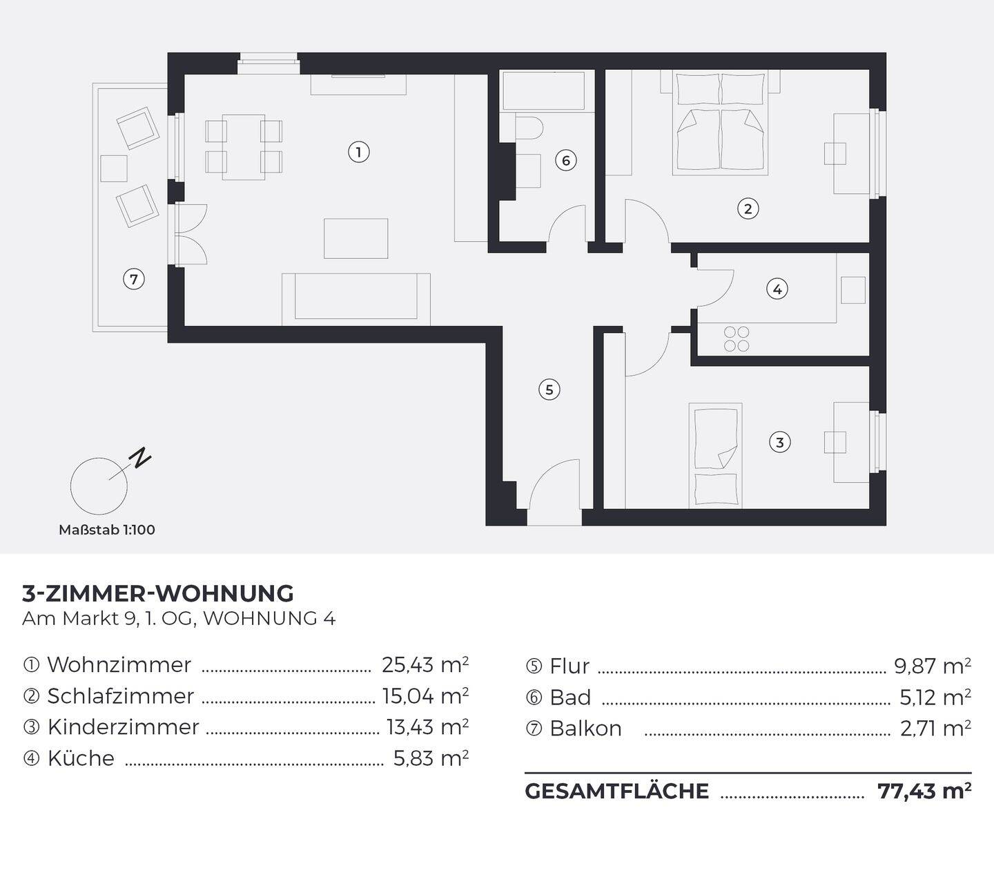 Wohnfläche:ca. 77,40 m²
