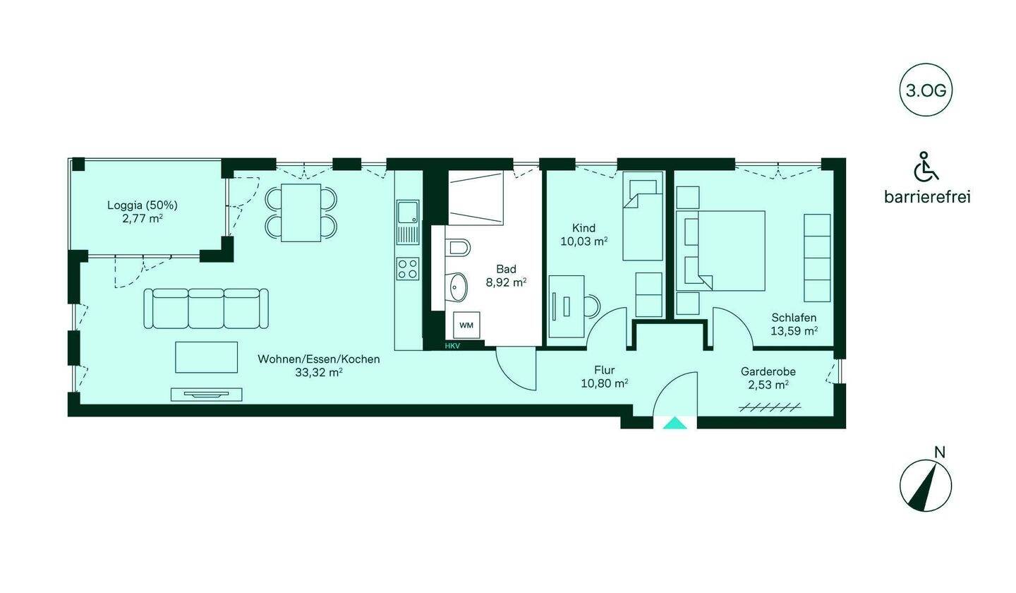 Eigentumswohnung mit Loggia - 464.900,00 EUR Kaufpreis, ca.  82,00 m² Wohnfläche